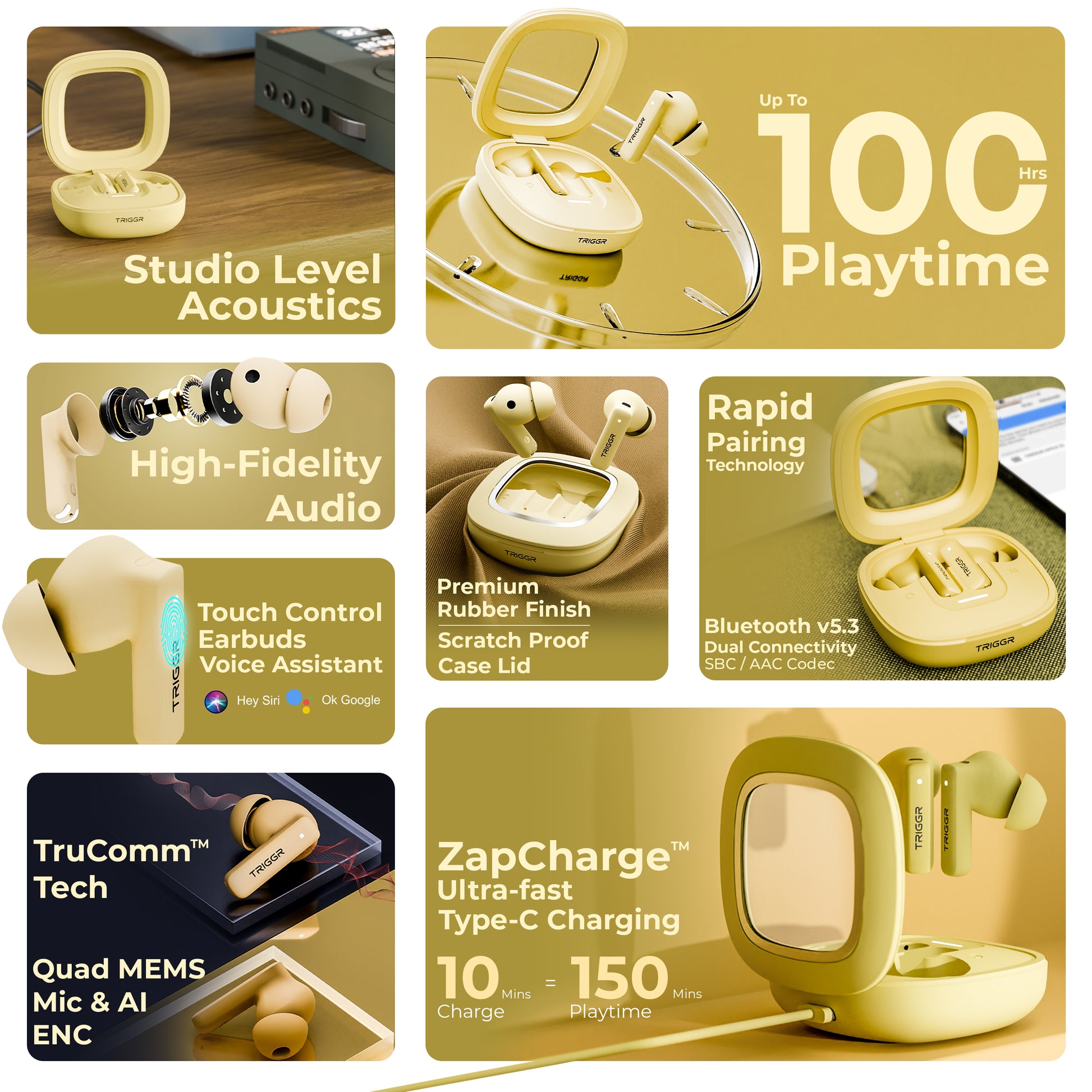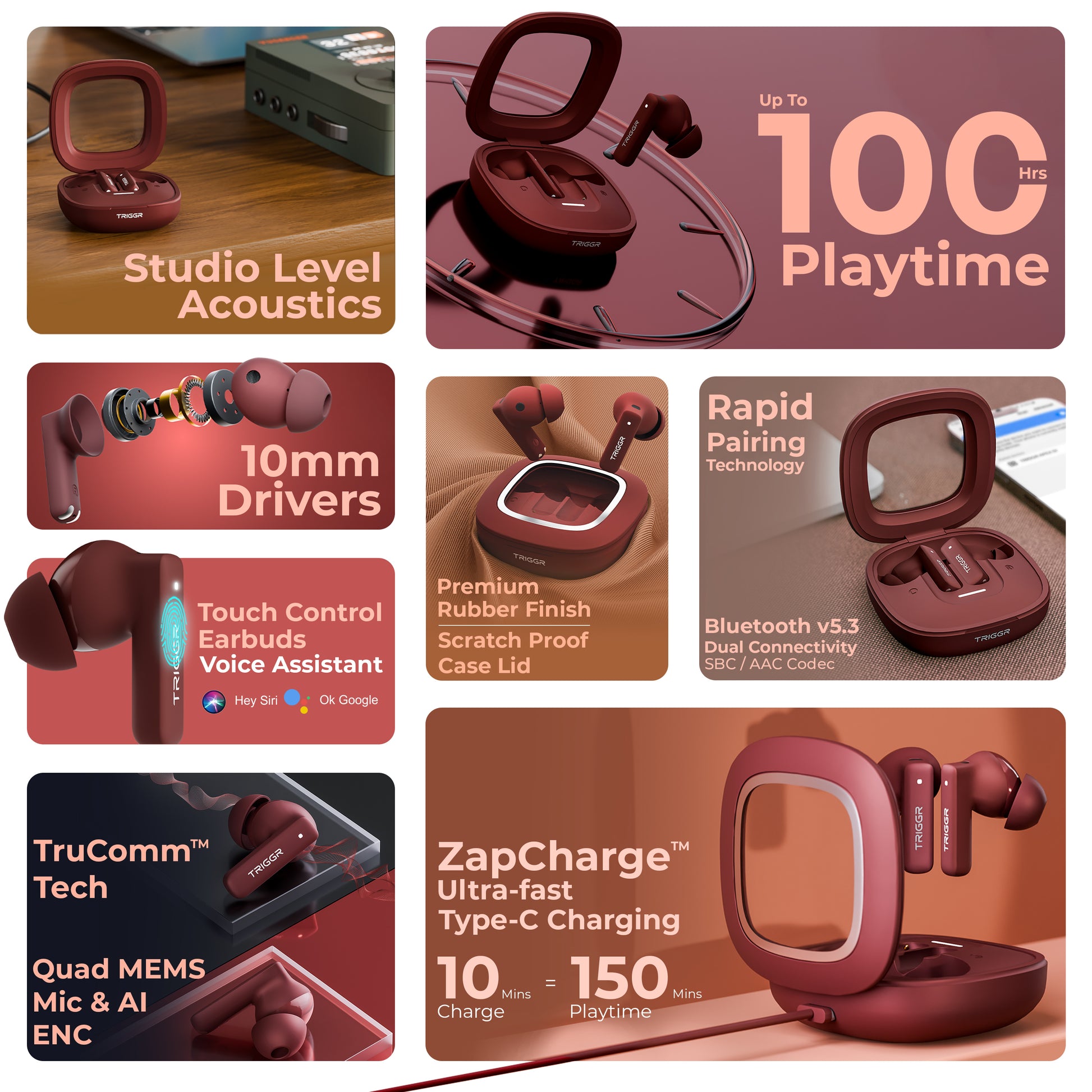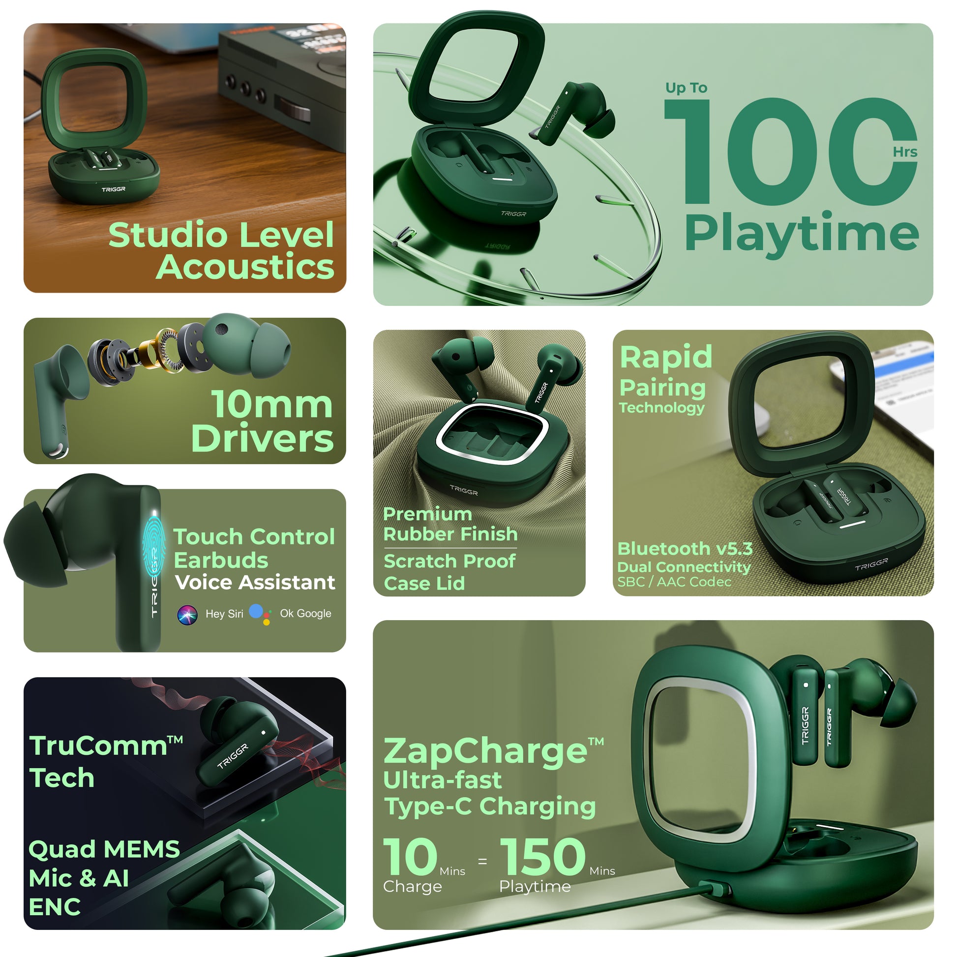 TRIGGR Apex S1 Dual Pairing, 100H Battery, 360º Spatial Soundstage, Quad Mic ENC, Scratch Proof, Rubber Finish Bluetooth Headset