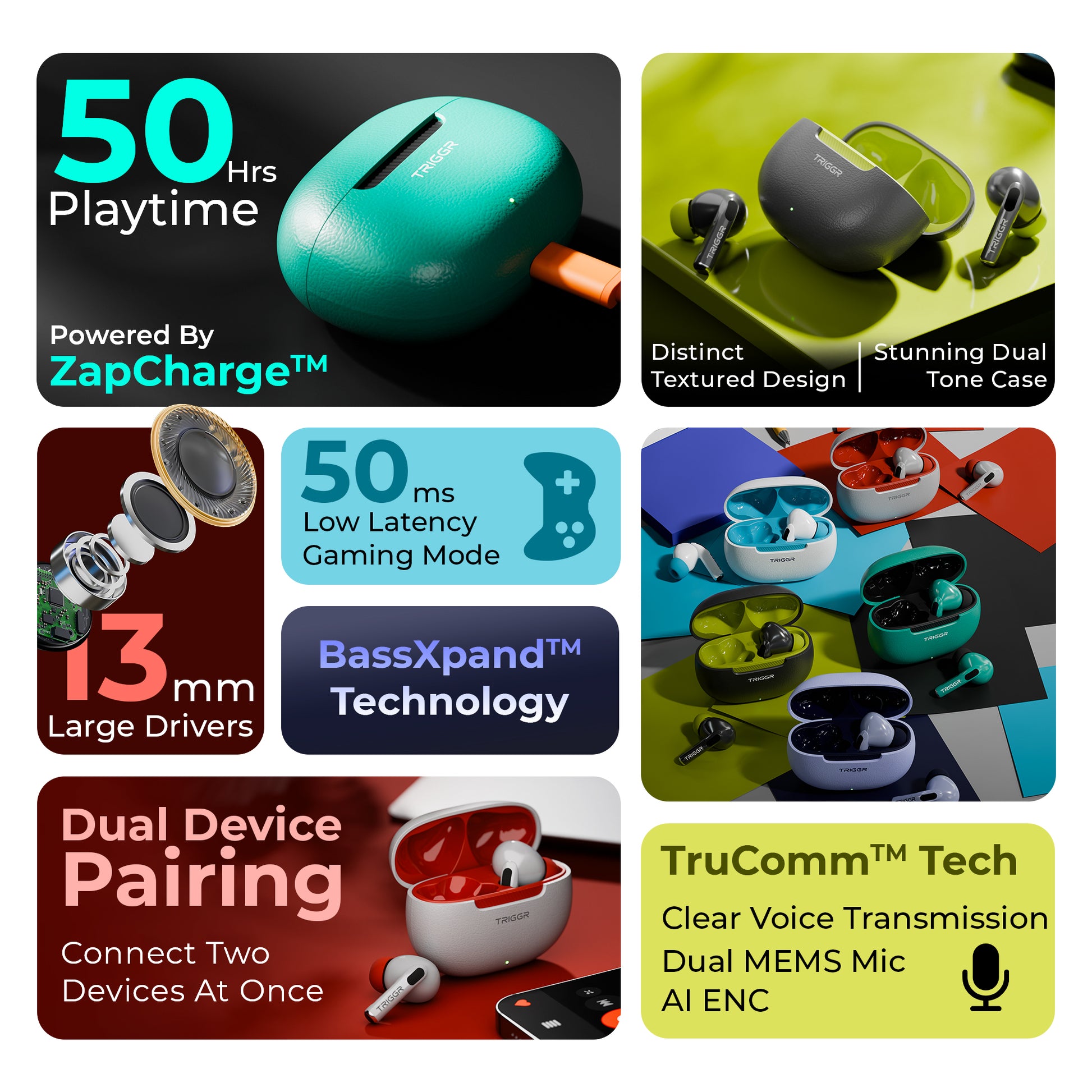 TRIGGR Cosmos with Textured Design, Dual Pairing, 50H Battery, 13mm Drivers, BT v5.3