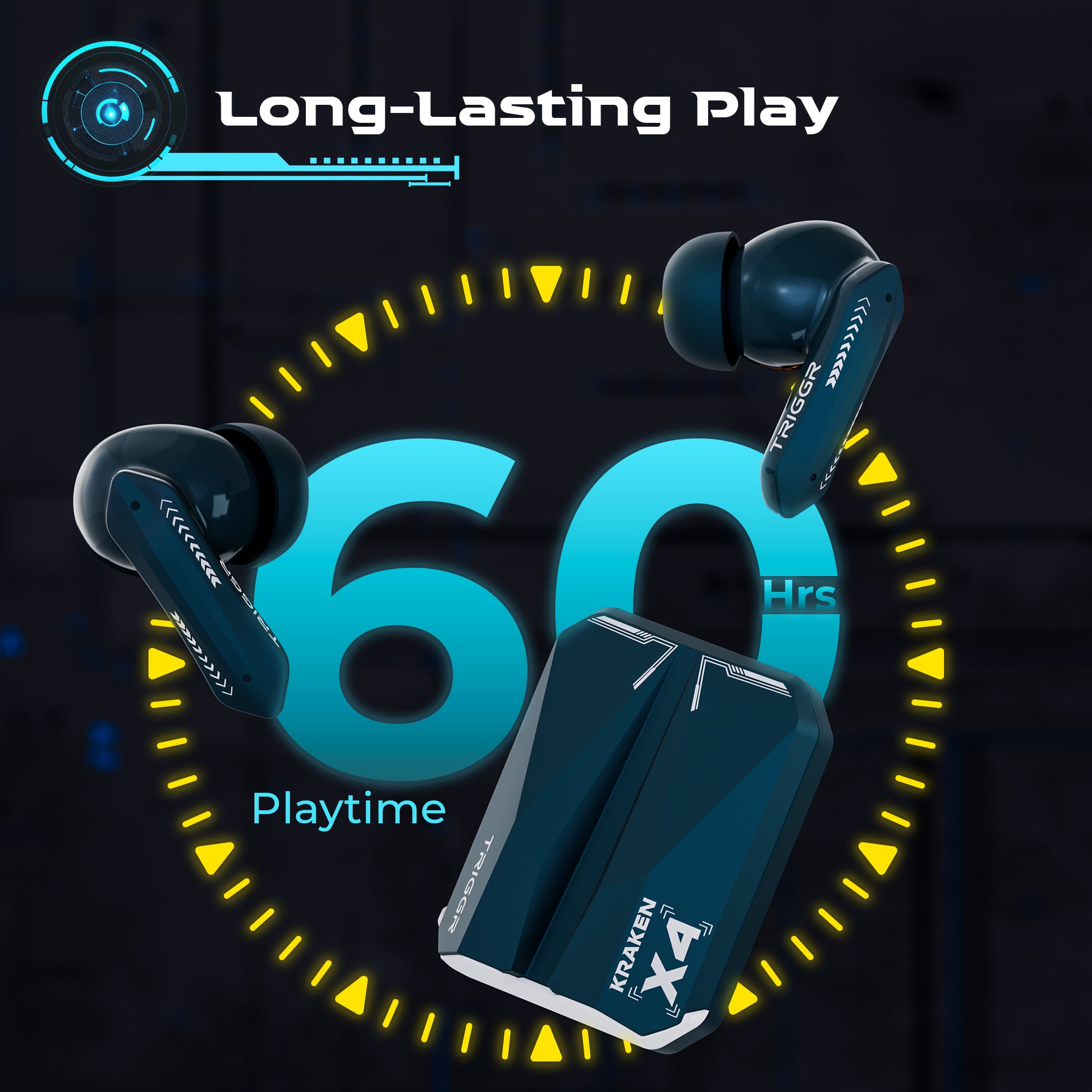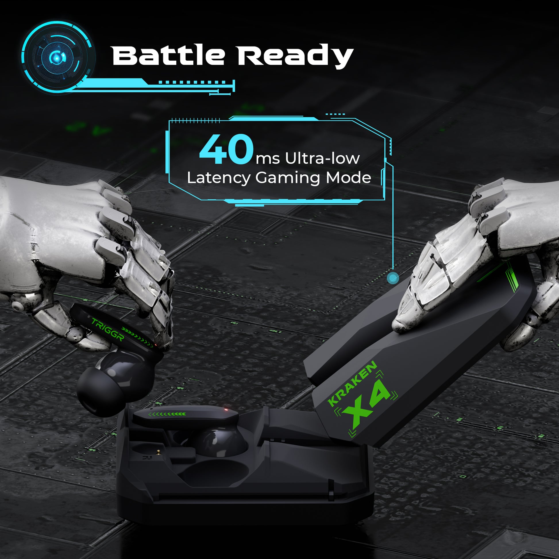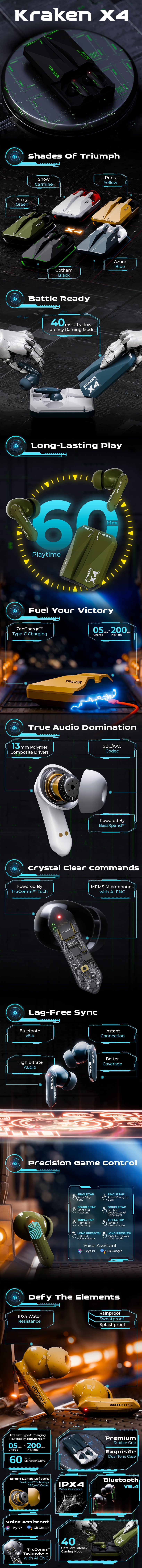 TRIGGR Kraken X4 with 13mm Drivers, 40ms Latency, ENC, 60H Battery, Rubber Finish, v5.4 Bluetooth