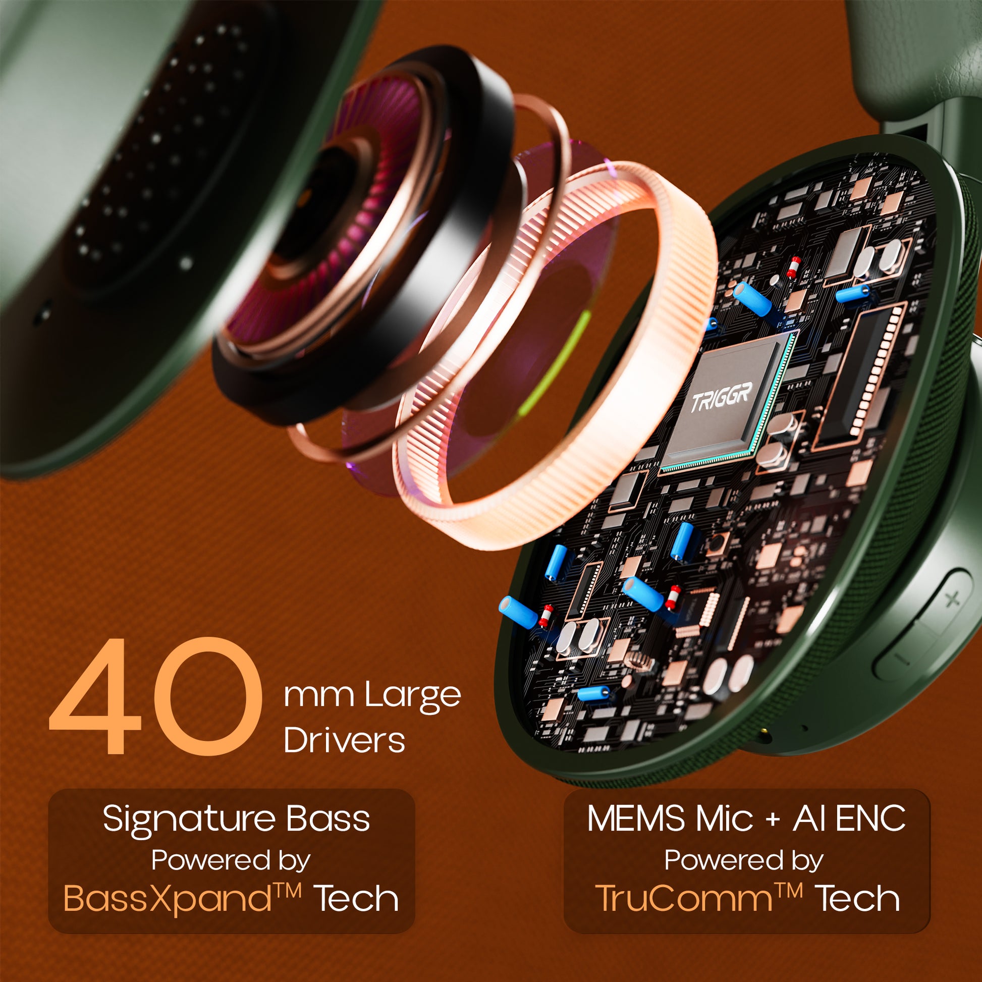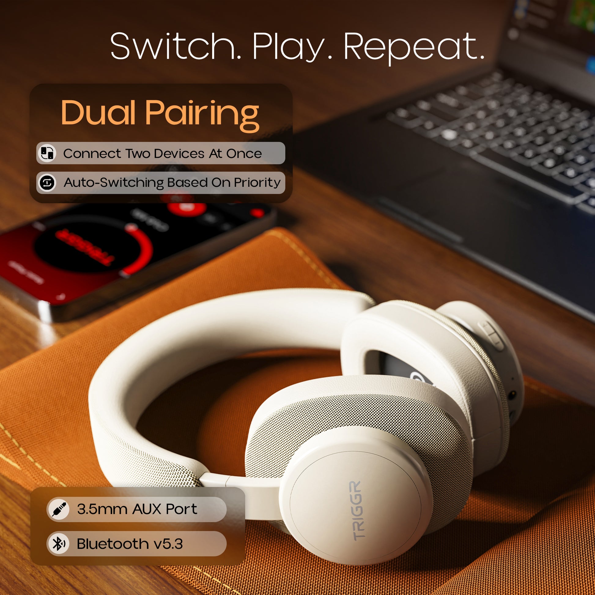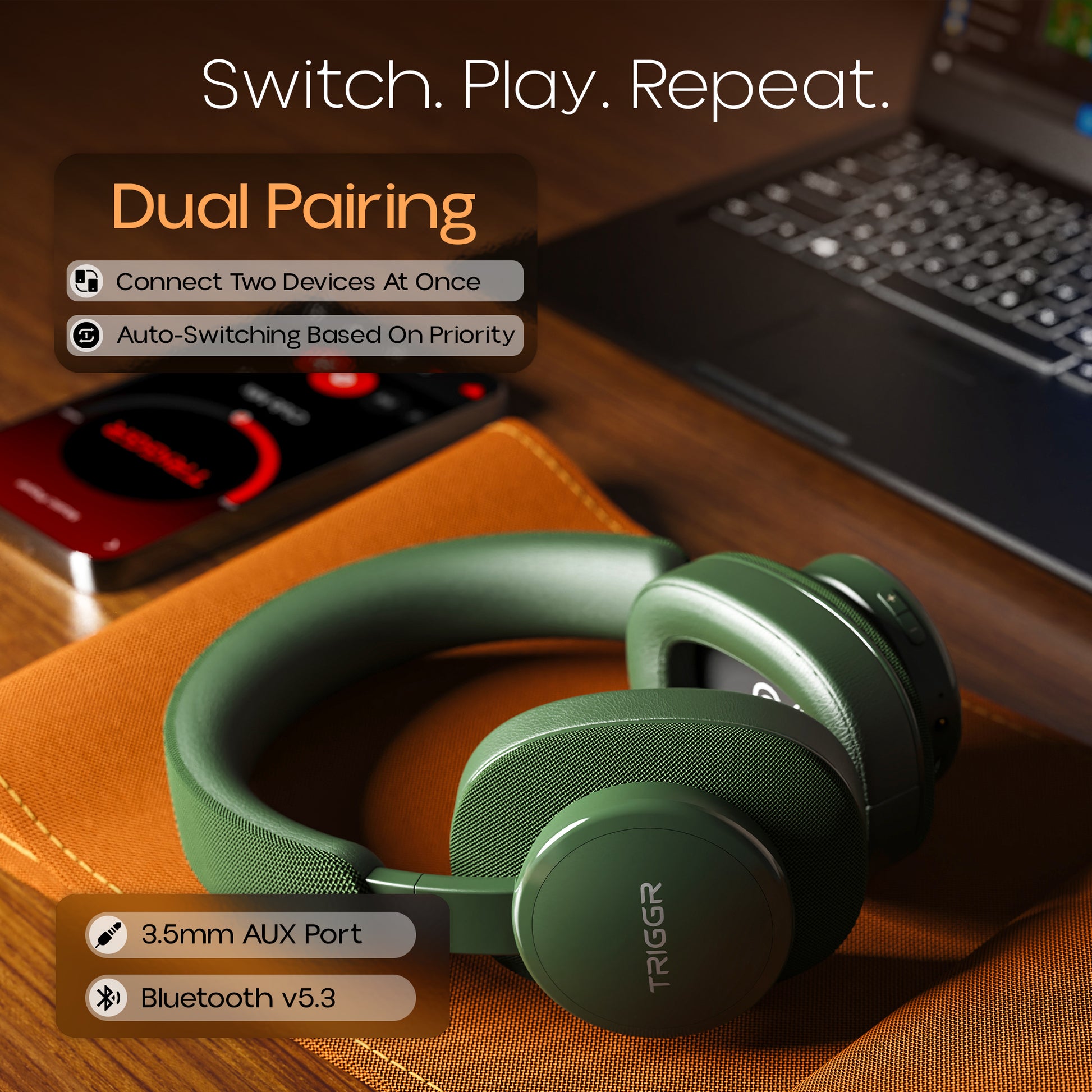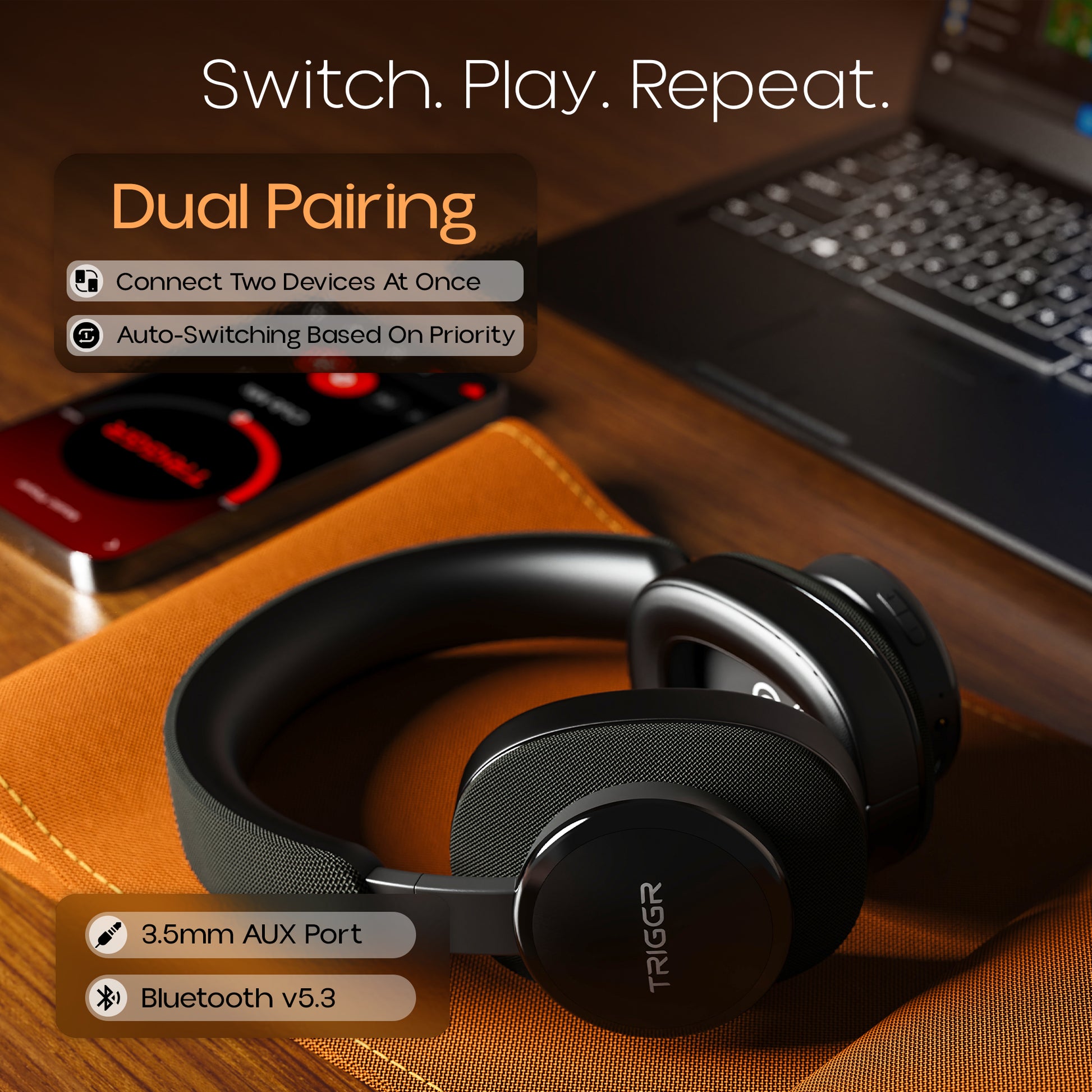 TRIGGR Trinity 3 with Fabric Finish, Dual Pairing, 50H Battery, Foldable Design, v5.3 Bluetooth