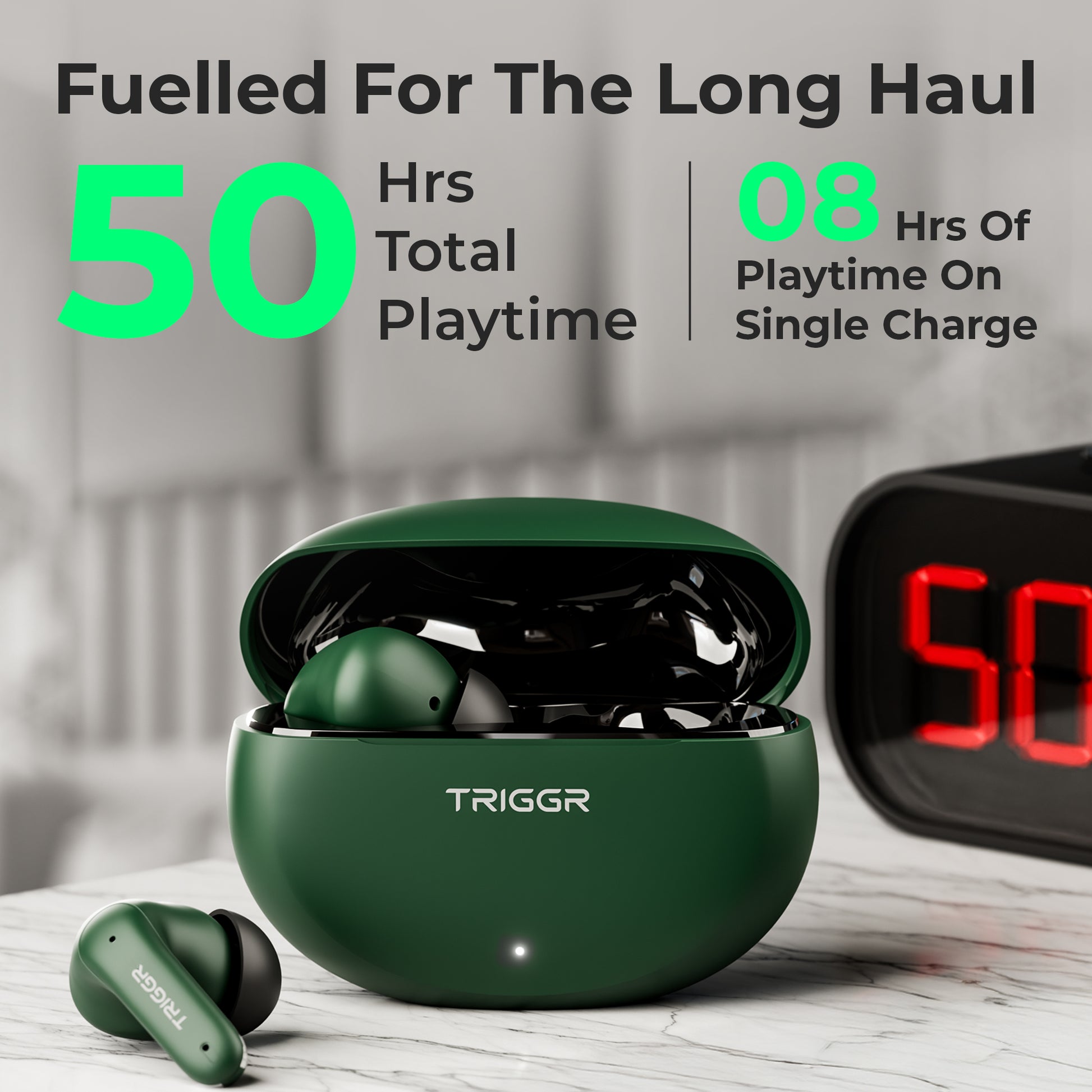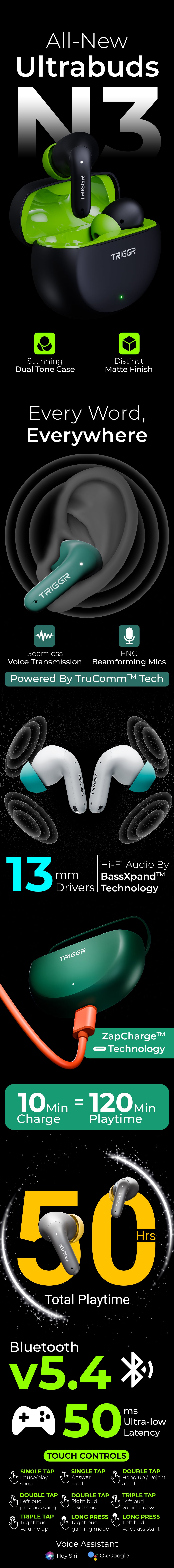 TRIGGR Ultrabuds N3 with Crystal-Clear Calling, 13mm Drivers, Fast Charging, 50H Battery, BassXpand Tech, v5.4 Bluetooth