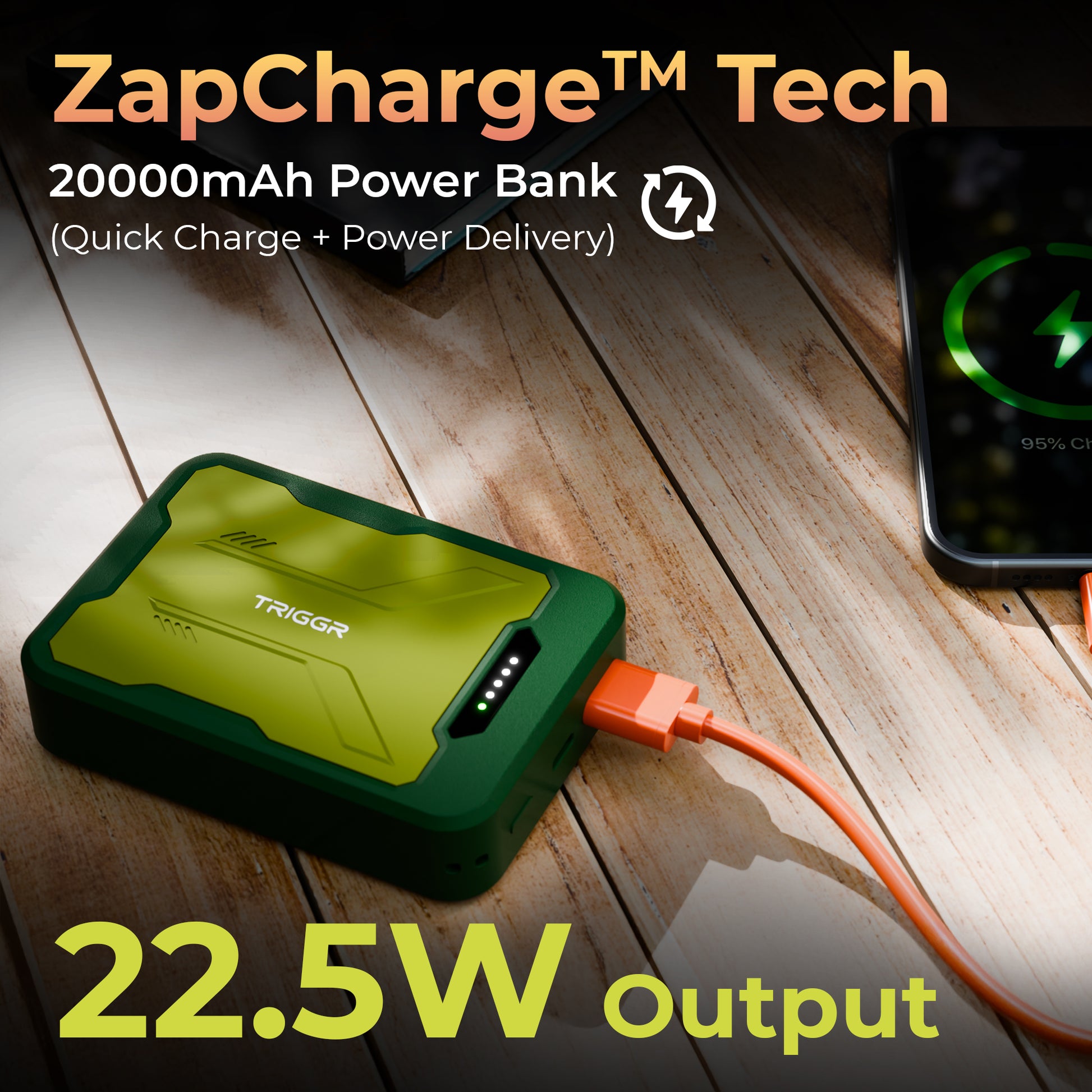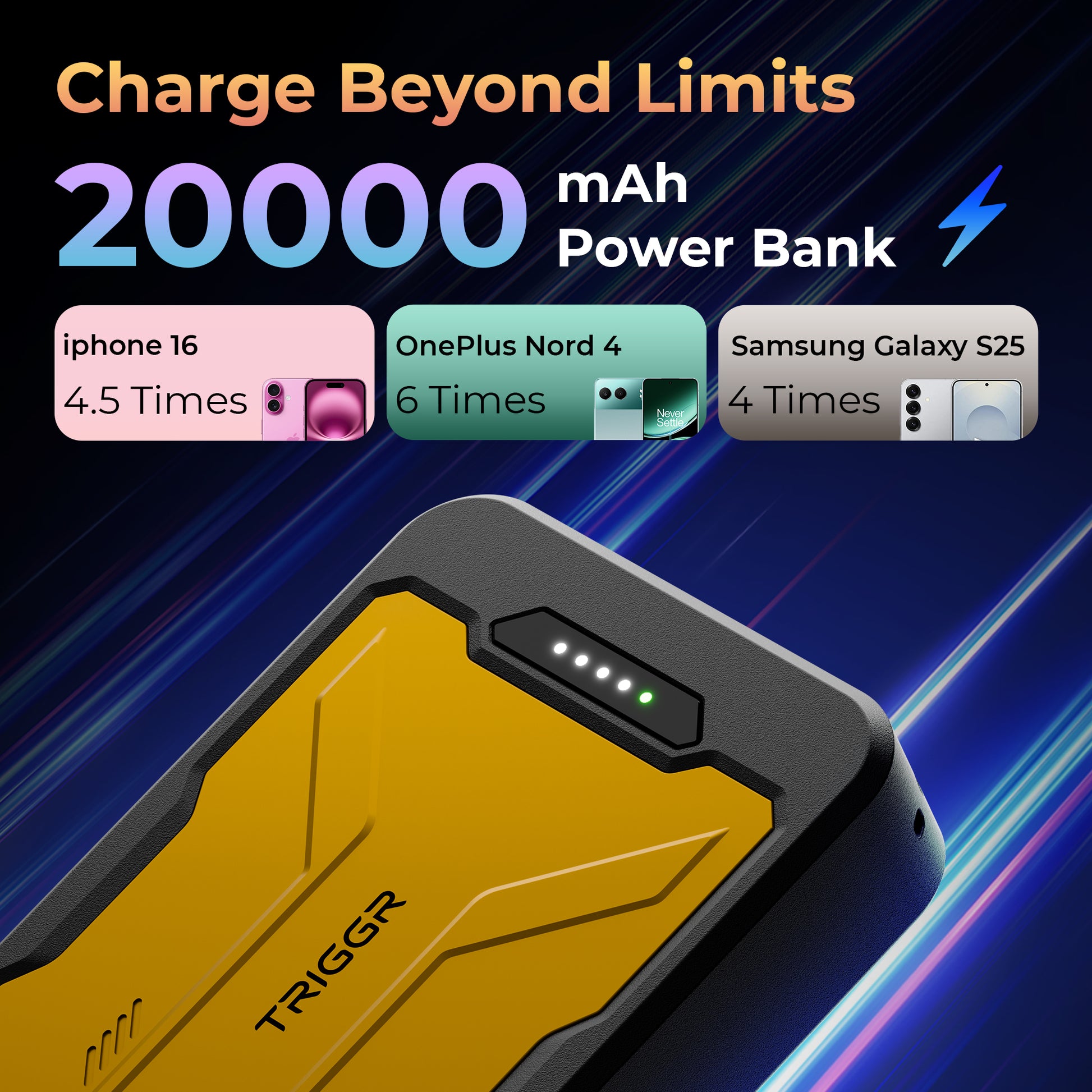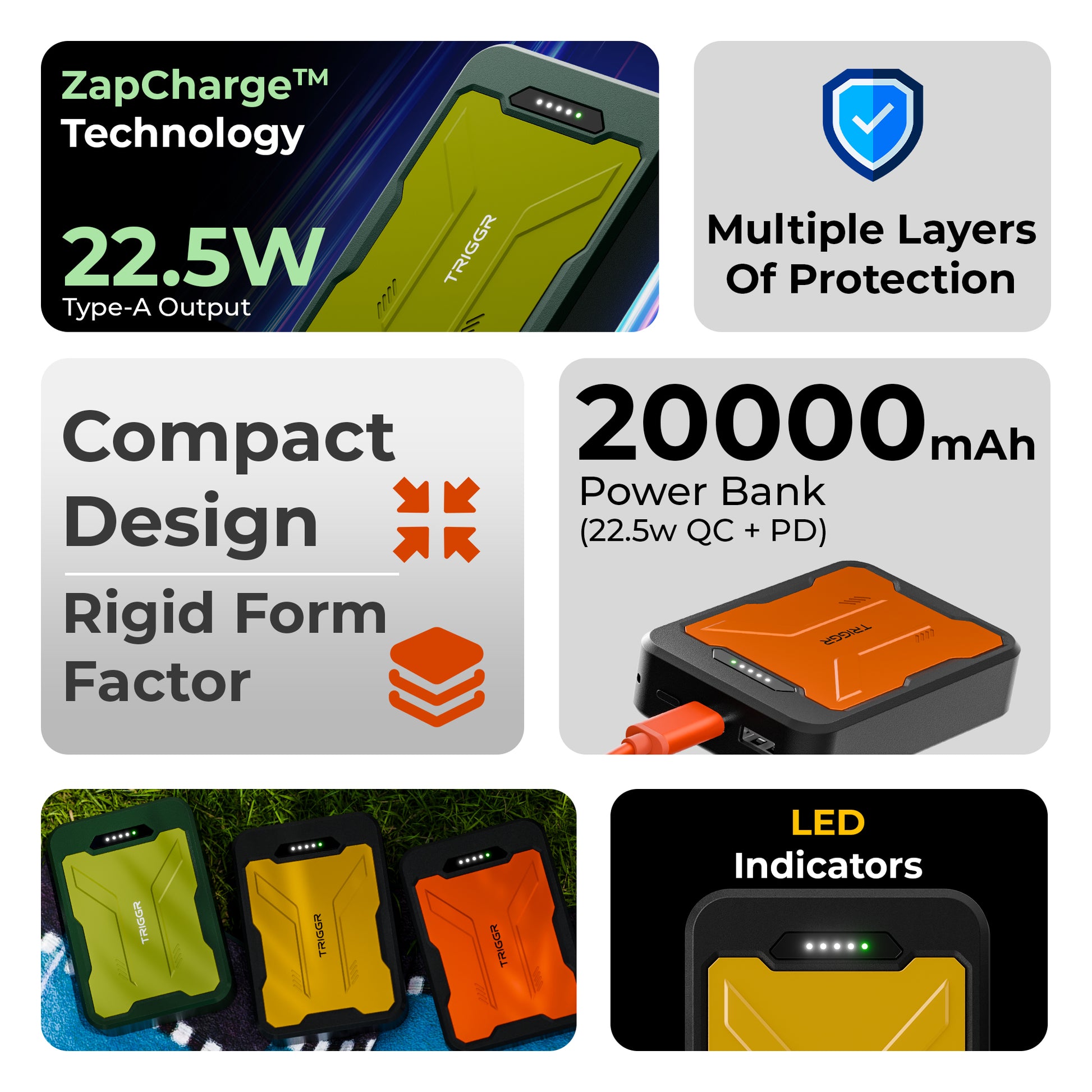 TRIGGR Volt V1 Plus, 20000mAh Pocket-Size Power Bank, 22.5W Quick Charge + Power Delivery Support