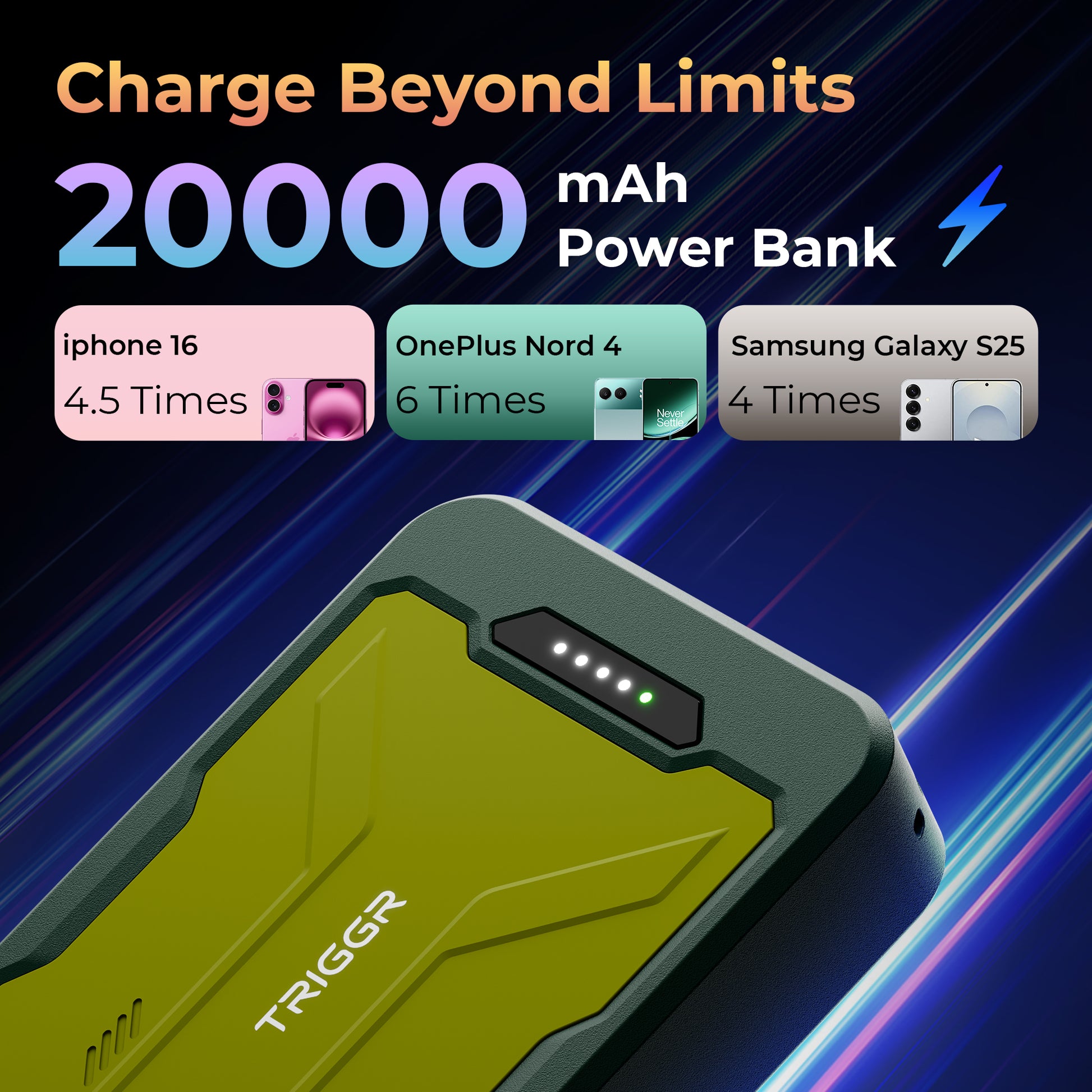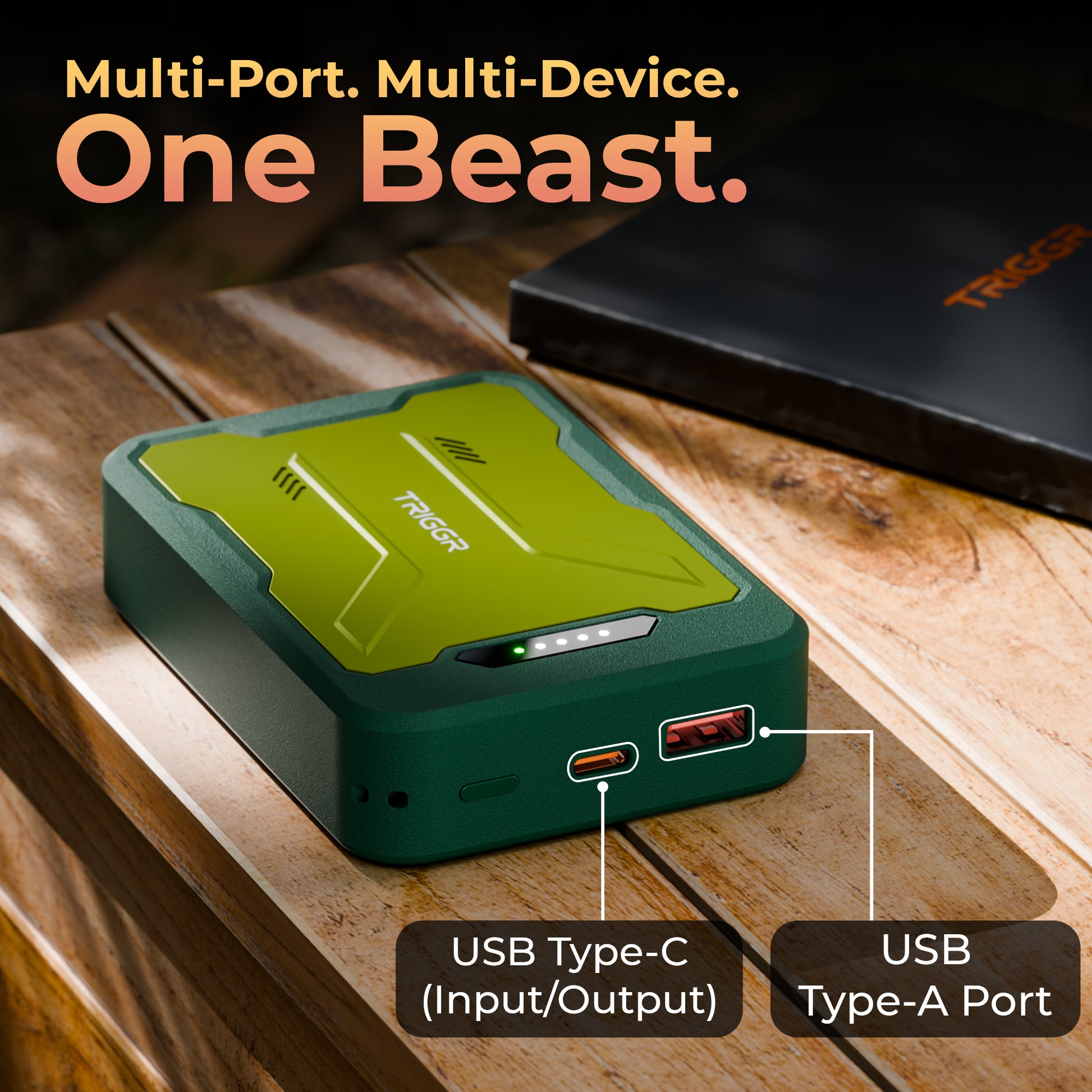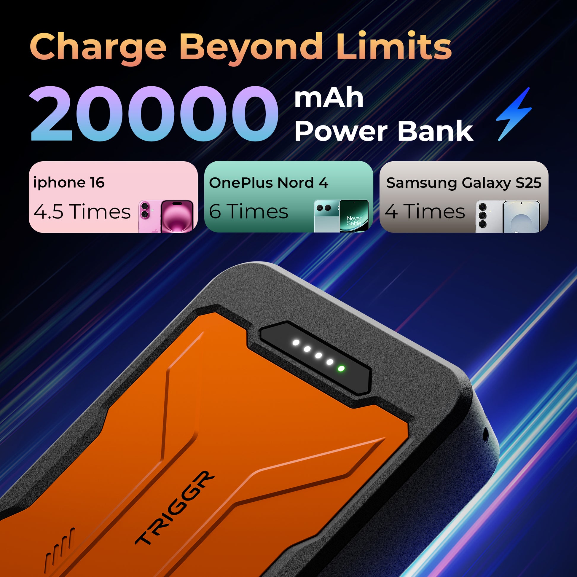 TRIGGR Volt V1 Plus, 20000mAh Pocket-Size Power Bank, 22.5W Quick Charge + Power Delivery Support