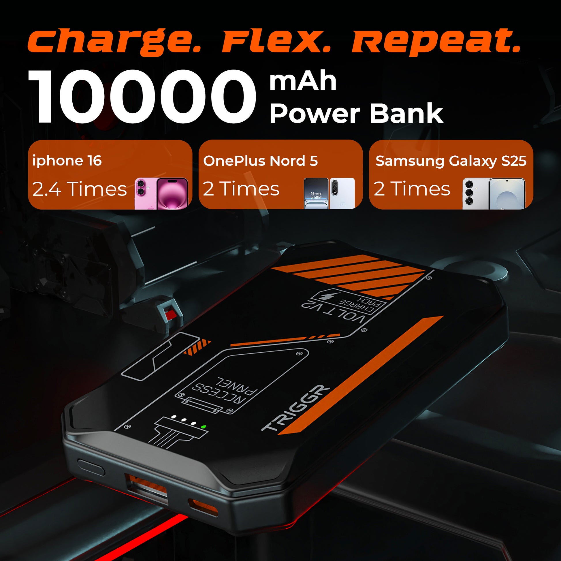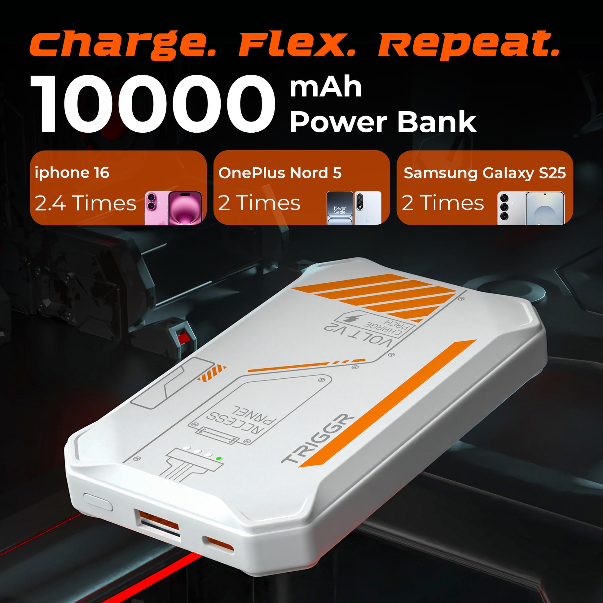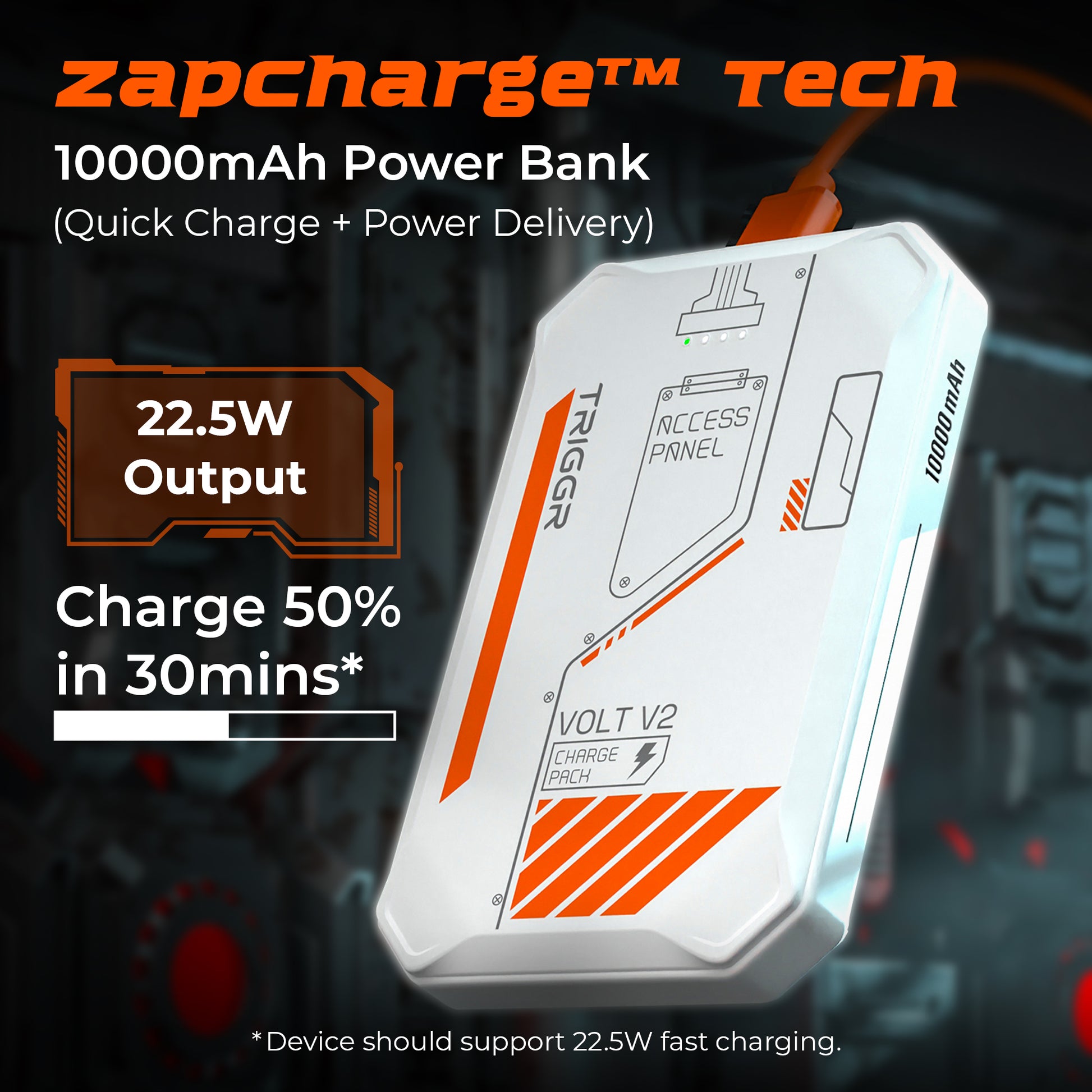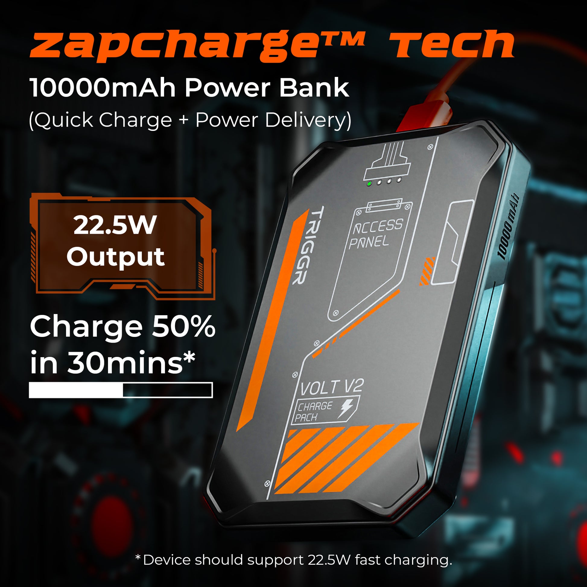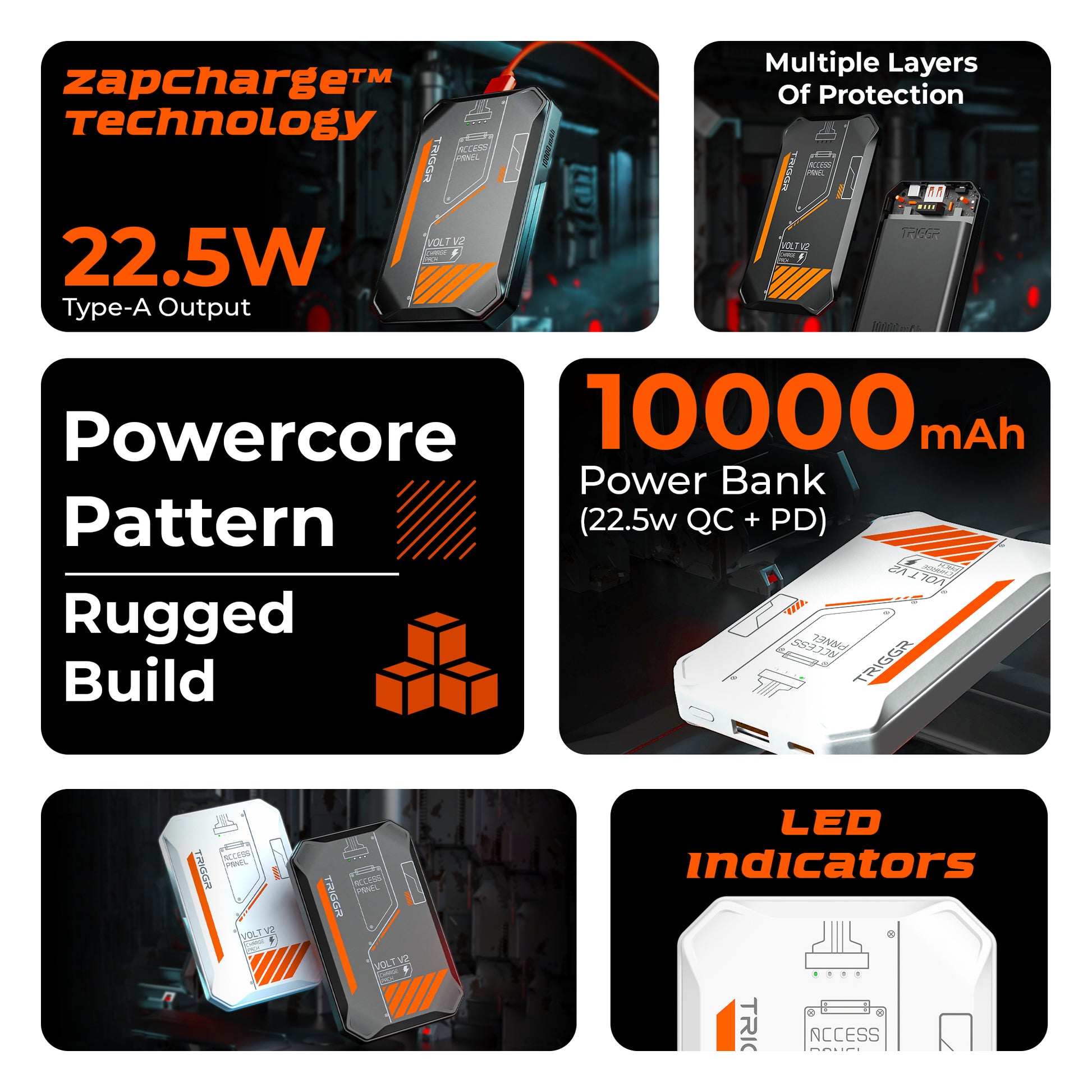 TRIGGR Volt V2, 10000mAh Pocket-Size Power Bank, 22.5W Quick Charge + Power Delivery Support
